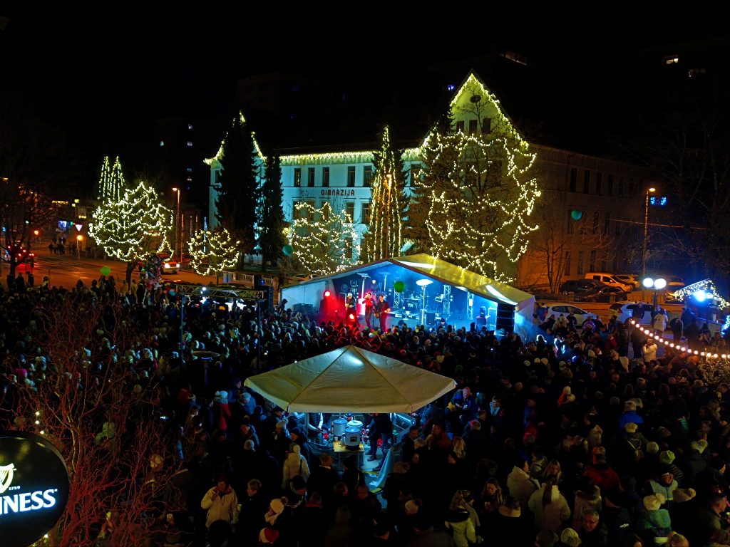 Po aplavzu v dvorani se je dogajanje preselilo na Trg Toneta Čufarja, kjer nas je ogrela energija zelo priljubljene skupine Yugo Nostalgica. Z nepozabnimi hiti iz nekdanje skupne države so poskrbeli za pravo decembrsko druženje – polno nostalgije, plesa, družbe prijateljev in tistega posebnega občutka, ko se leto počasi poslavlja, na površino pa prihajajo upi za prihajajoče obdobje.