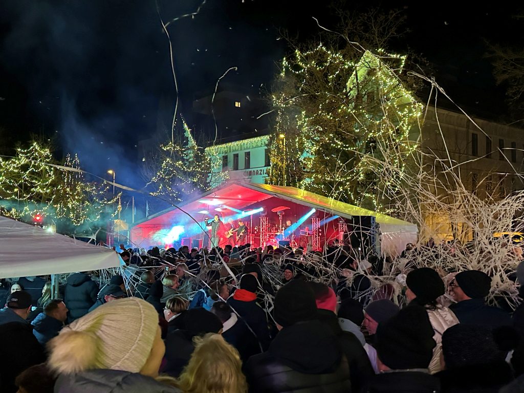 Večer smo začeli v razprodani dvorani Kina Železar, kjer je svoj praznični novoletni koncert pripravil Pihalni orkester Jesenice – Kranjska Gora. Tradiciji zvesto so ponovno navdušili z iskrivim izborom melodij, poseben čar pa je letošnjemu koncertu dala gostja Maja Keuc, ki je s svojim prepoznavnim glasom pričarala čustva, toplino in praznično mero čarobnosti.