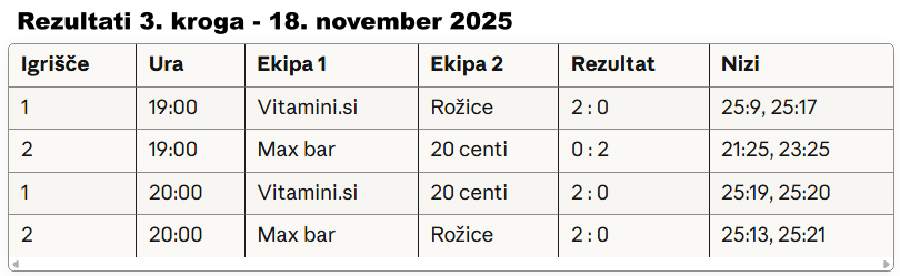 Ekipa Trias je nadaljevala s prepričljivimi predstavami. V dvoboju z Rožicami niso pustili dvoma o svojih ambicijah in zanesljivo slavili z 2:0. Prvi niz so dobili kar s 25:8, drugi pa s 25:14. Trias tako ostaja med vodilnimi ekipami lige in kaže, da bo še naprej eden glavnih kandidatov za vrh.