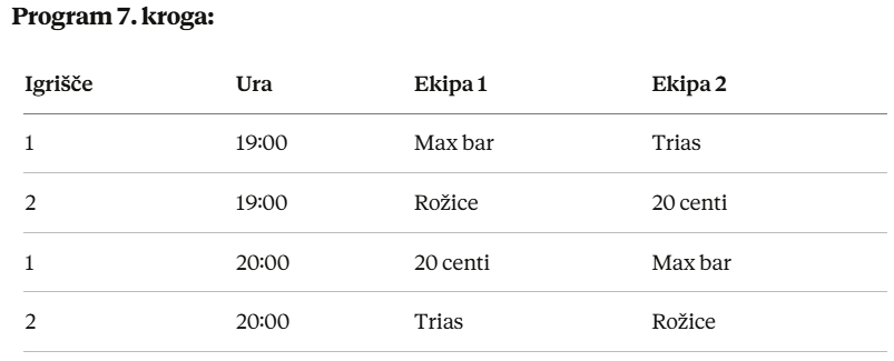 Posebej zanimiv bo dvoboj med Max barom in Triasom, ki so si na lestvici zelo blizu. 20 centi bodo po odlični formi skušali nadaljevati z zmagami, medtem ko bodo Rožice – upajmo – poskušali končno priti do prvih točk v sezoni.